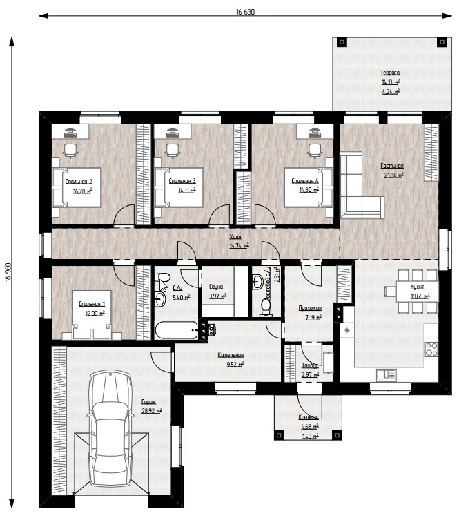- Площадь гаража: 24 м2