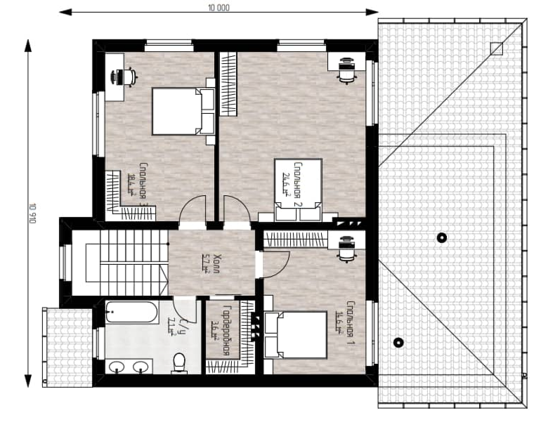 - Площадь террас: 52,27 м2